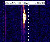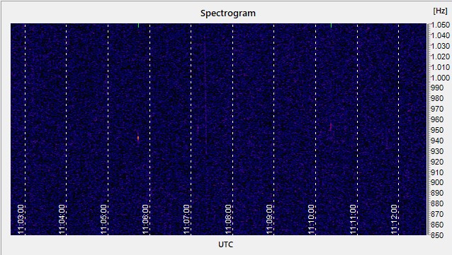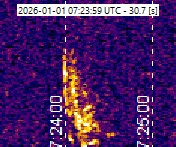 If we want to have a more detailed view, lets have a look at the spectrogram for the last hour. Here we can see everything, not only the detected meterids but also Satellites and Planes.