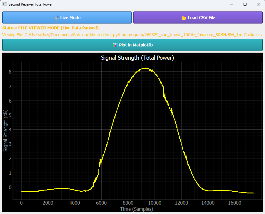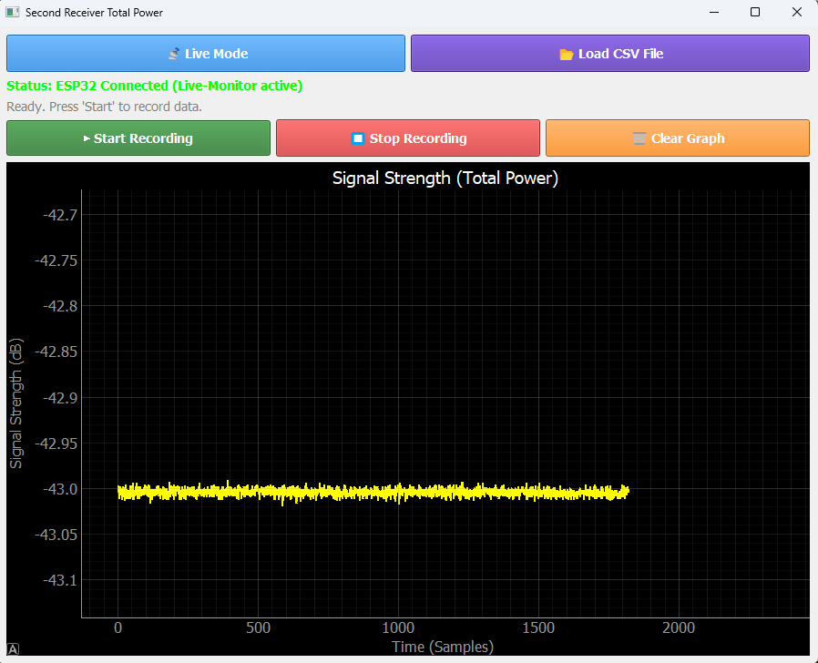 In live mode, the program displays the current signal strength as a continuously updated graph.