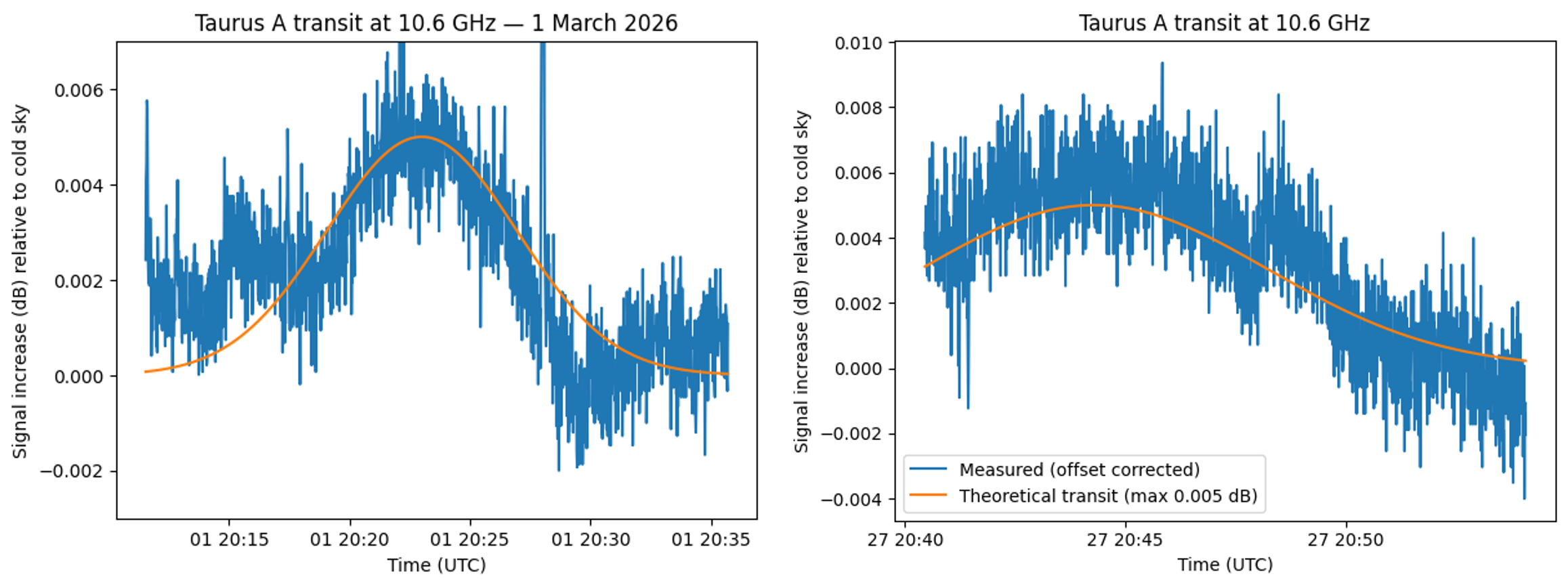 Despite these challenges, a signal increase of approximately 0.005 dB was successfully detected — fully consistent with theoretical predictions for a 1-meter dish with ~70% efficiency.