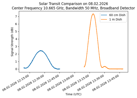 - The amplitude of the solar signal is significantly lower for the 60 cm dish.
